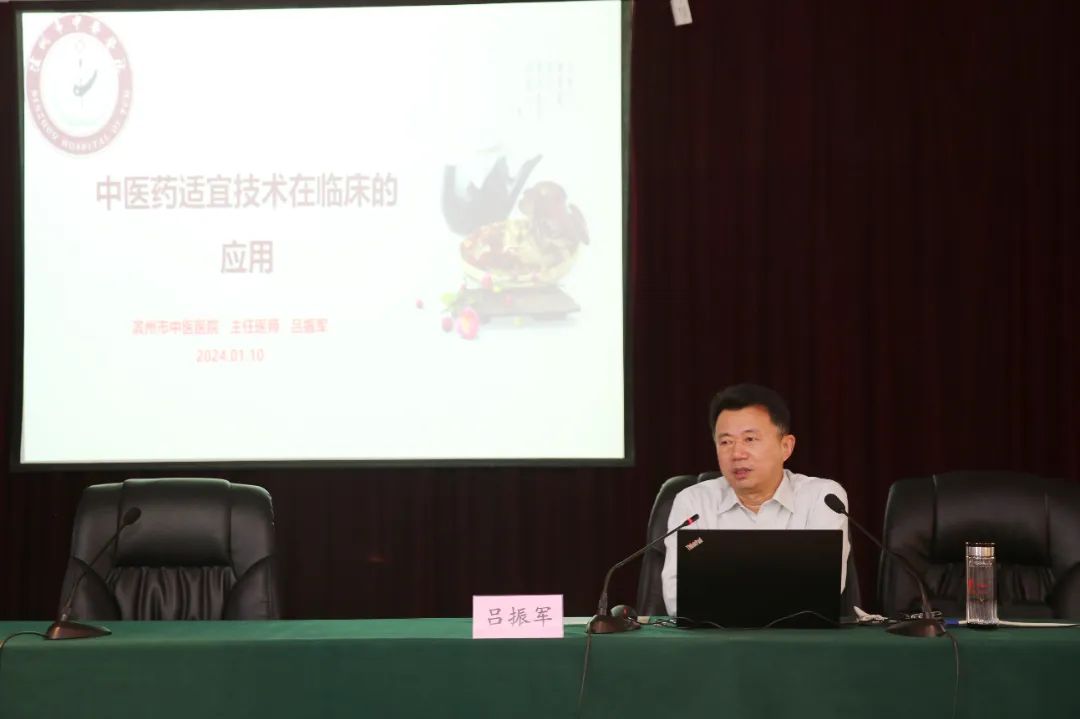 隨后,濱州市中醫(yī)院醫(yī)務(wù)處主任、脾胃病科主任,三級主任醫(yī)師呂振軍,以《中醫(yī)藥適宜技術(shù)在臨床的應(yīng)用》為題開展了一場全面細(xì)致的專題講座,結(jié)合臨床經(jīng)驗(yàn)與工作實(shí)際,從中醫(yī)藥文化、中醫(yī)治療方法、中醫(yī)經(jīng)絡(luò)學(xué)說、腧穴作用及定位、脾胃疾病的辯證治療、中藥封包治療方式等方面系統(tǒng)地講授了中醫(yī)藥適宜技術(shù),深入淺出的向參培人員傳授了常見疾病的中醫(yī)治療方法和中醫(yī)基礎(chǔ)知識。