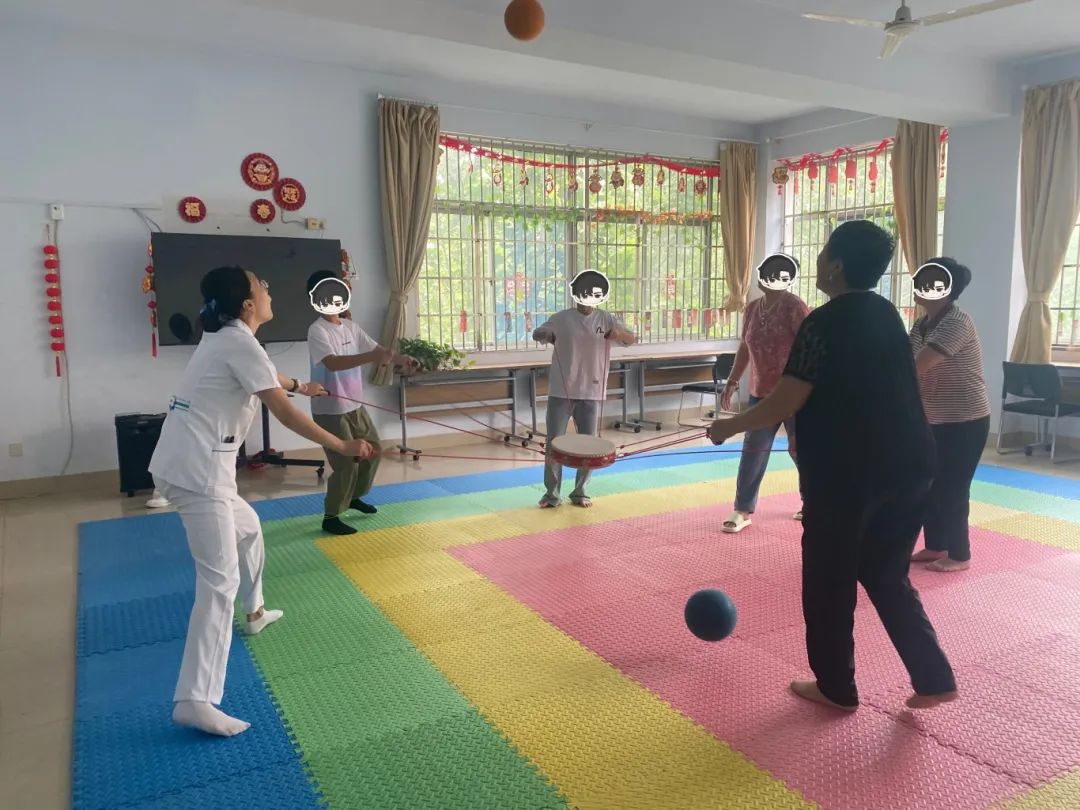 “丟手絹”游戲點燃了全場熱情?!皝G呀丟呀丟手絹——”熟悉的童謠響起,患者們踮著腳,偷偷把手絹放在小伙伴身后,轉(zhuǎn)身便笑著飛奔。 大家在加油助威中奔走著,追逐著,仿佛回到那個無憂無慮的孩童時代。