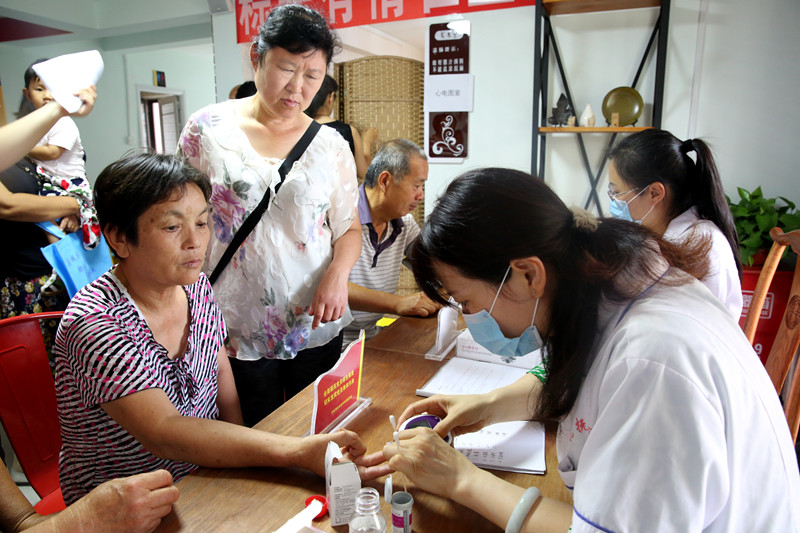 醫(yī)護(hù)人員給老年人測(cè)血糖