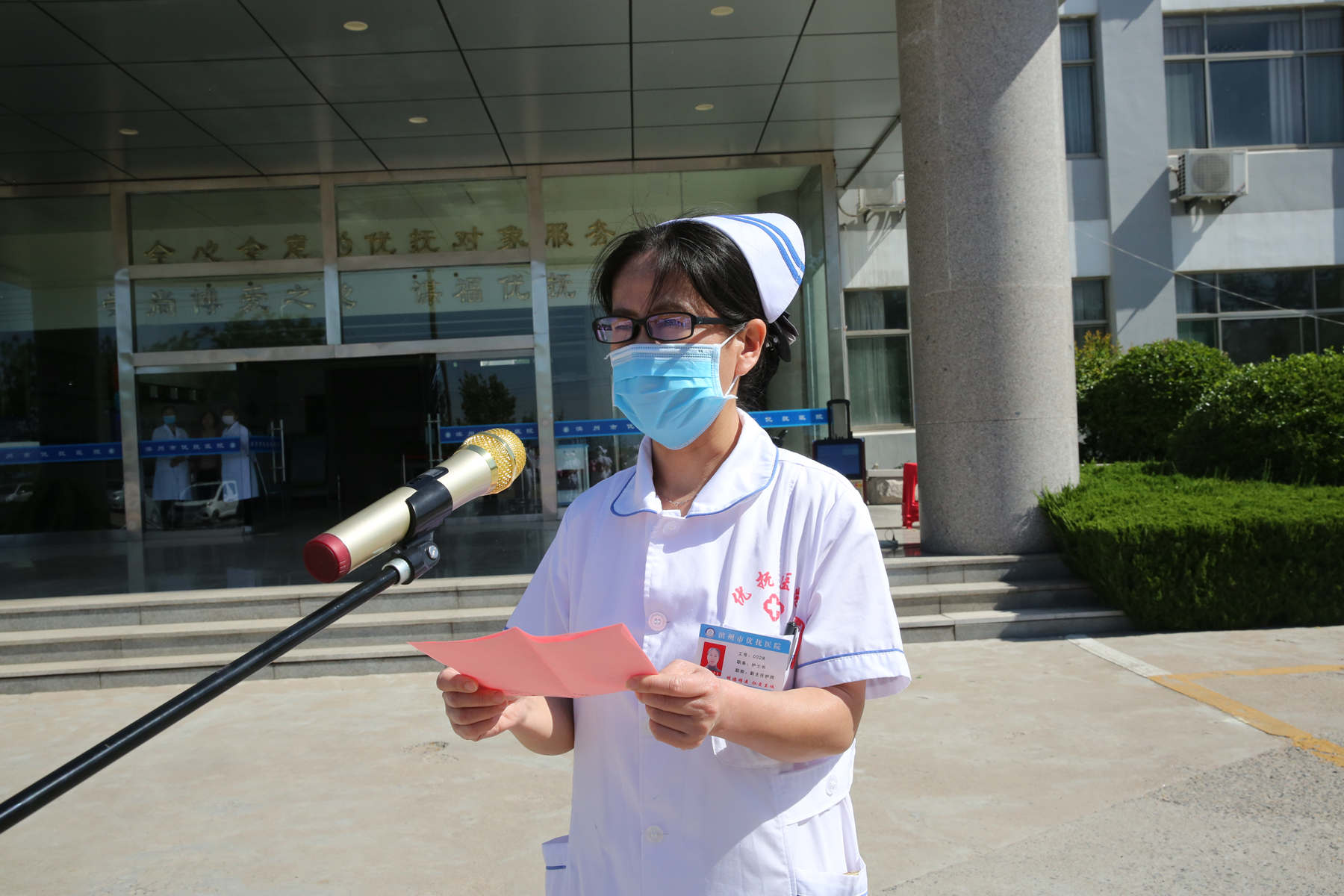 優(yōu)秀護(hù)士代表王學(xué)雷作代表全院護(hù)士宣讀倡議書,倡議全院護(hù)士以南丁格爾的無私奉獻(xiàn)精神為動力,不忘初心、不負(fù)韶華、不辱使命,在平凡的崗位上成就不凡的業(yè)績!