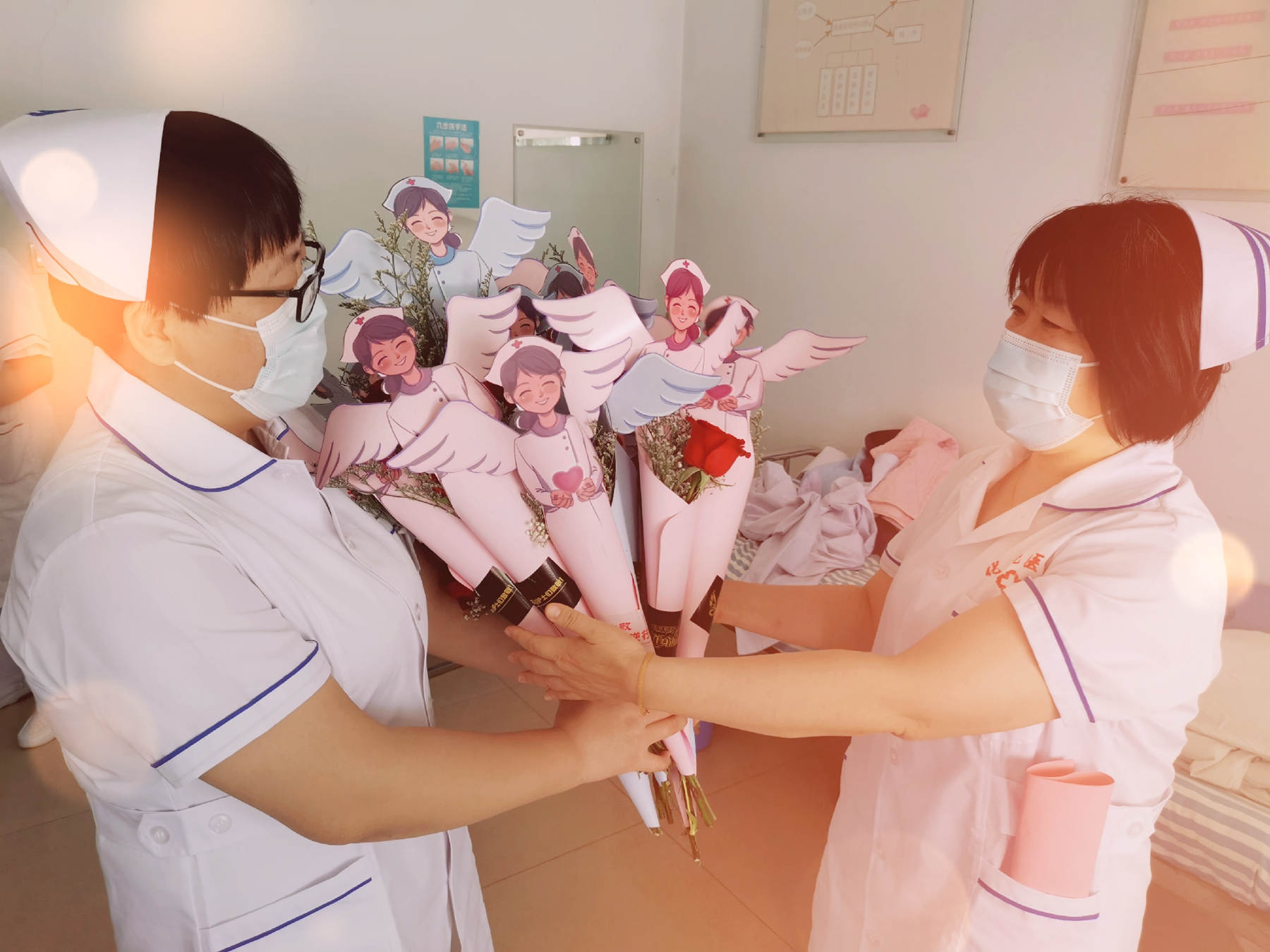 活動結(jié)束后,醫(yī)院為全院109名護(hù)士送去了鮮花和節(jié)日的祝福。