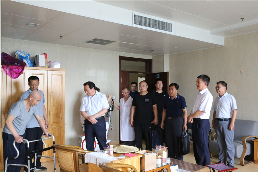 7月30日上午,濱州市殘聯(lián)黨組書記、理事長馬良德、副理事長崔洪兵一行來我院調(diào)研,院長牛希國、院長助理、醫(yī)務(wù)處主任楊洪志,護(hù)理部及老年養(yǎng)護(hù)科負(fù)責(zé)人陪同調(diào)研。