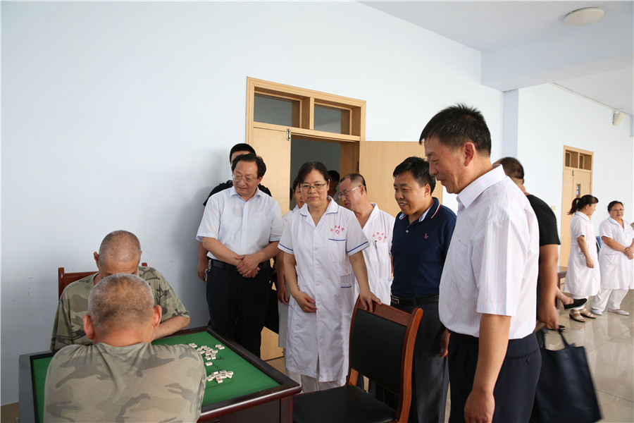 調(diào)研組一行先后到我院老年人養(yǎng)護(hù)中心、老年內(nèi)科、病區(qū)及工娛治療室進(jìn)行了實地參觀,并就精神殘疾人治療、康復(fù)、精神疾病救助等項目進(jìn)行了對接洽談。