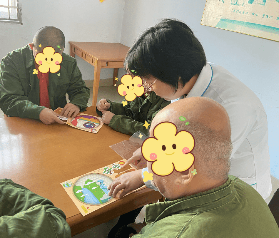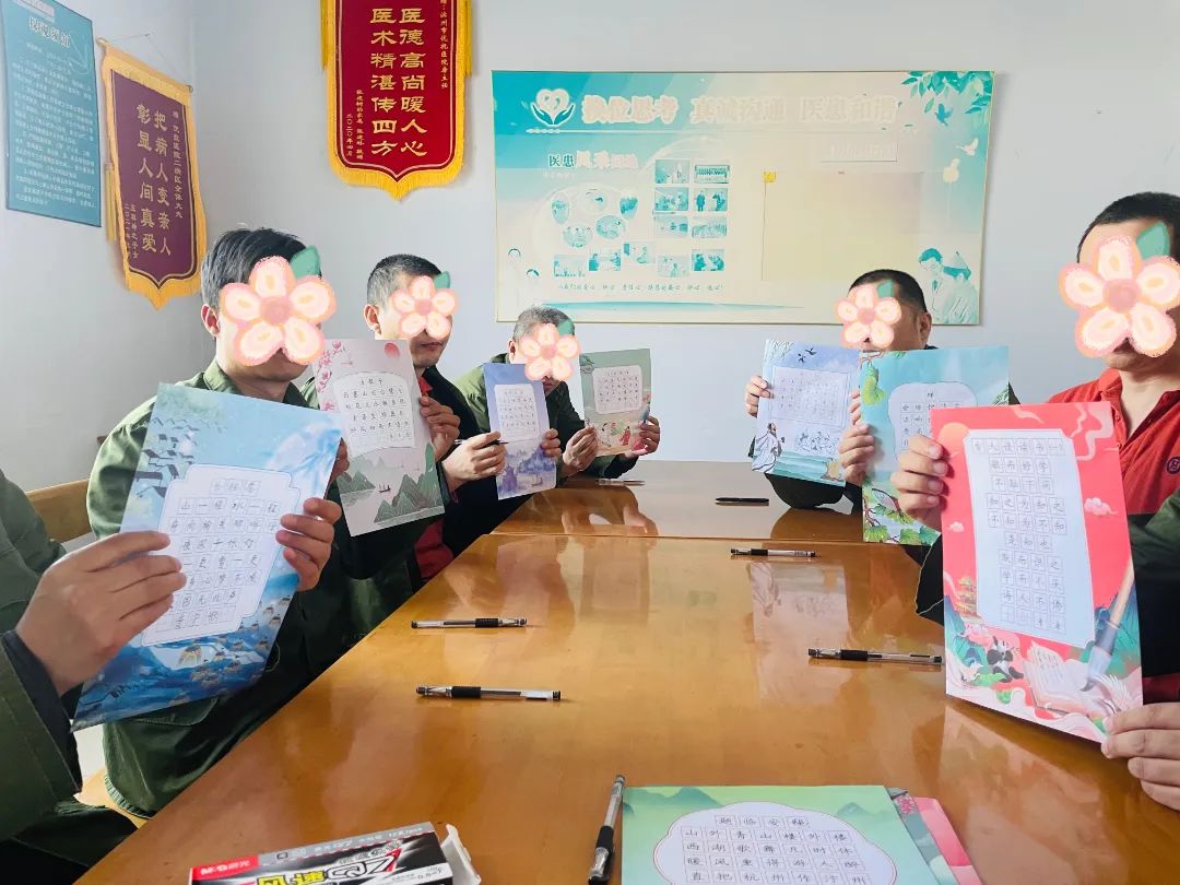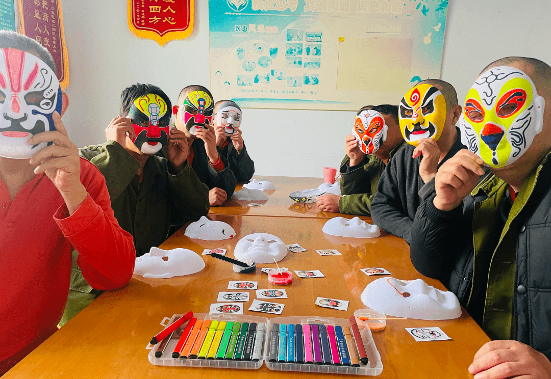 藝術(shù)創(chuàng)作轉(zhuǎn)移患者對(duì)病態(tài)體驗(yàn)的過(guò)度關(guān)注,減少焦慮與抑郁情緒;精細(xì)動(dòng)作訓(xùn)練(如握筆、裁剪)幫助恢復(fù)手部協(xié)調(diào)能力;集體活動(dòng)則重建社交信心:臉譜、書(shū)法等傳統(tǒng)文化元素激發(fā)患者對(duì)美的感知,增強(qiáng)文化認(rèn)同感。