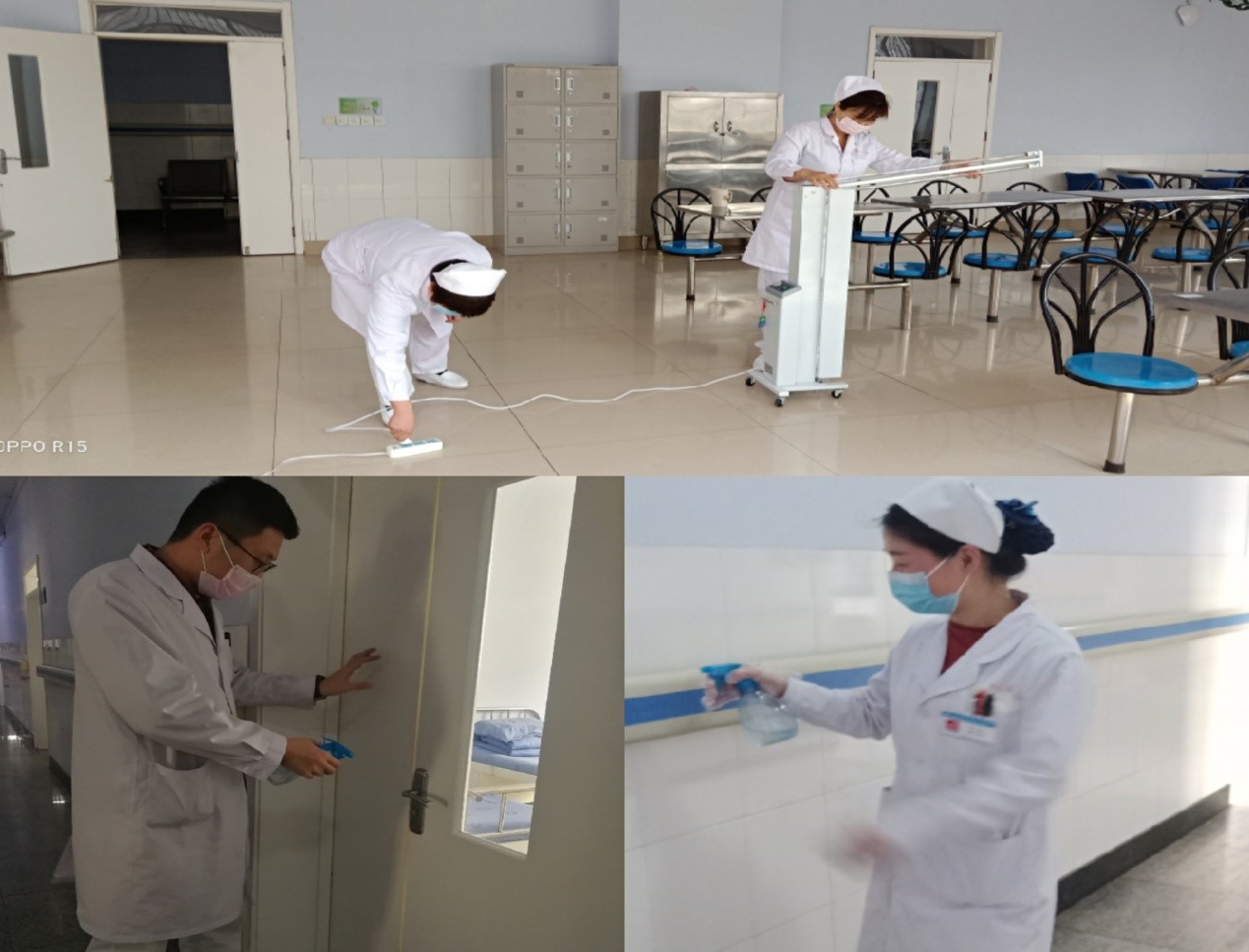 科室全體人員除做好日常醫(yī)療護(hù)理工作外,堅(jiān)決做好防控工作,配比84消毒液及酒精等對病房門把手、櫥柜、地面、墻壁等位置噴灑消毒,每個(gè)房間每日進(jìn)行紫外線等消毒。