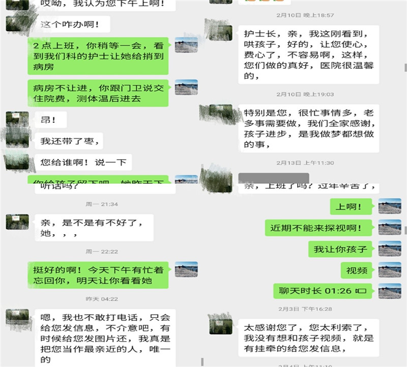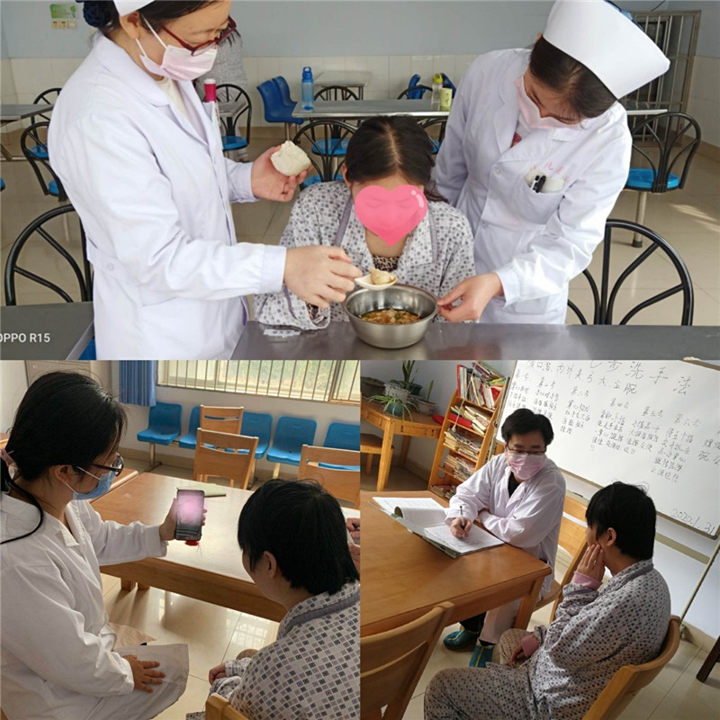 由于疫情家人不能前來探視,醫(yī)護(hù)人員了解每位病人情況,擔(dān)任起“家屬”角色,為有情緒波動(dòng)的患者喂飯喂藥,同時(shí)積極開展“一對一”心理疏導(dǎo),并利用電話、視頻等多種方式讓患者與家屬線上溝通。