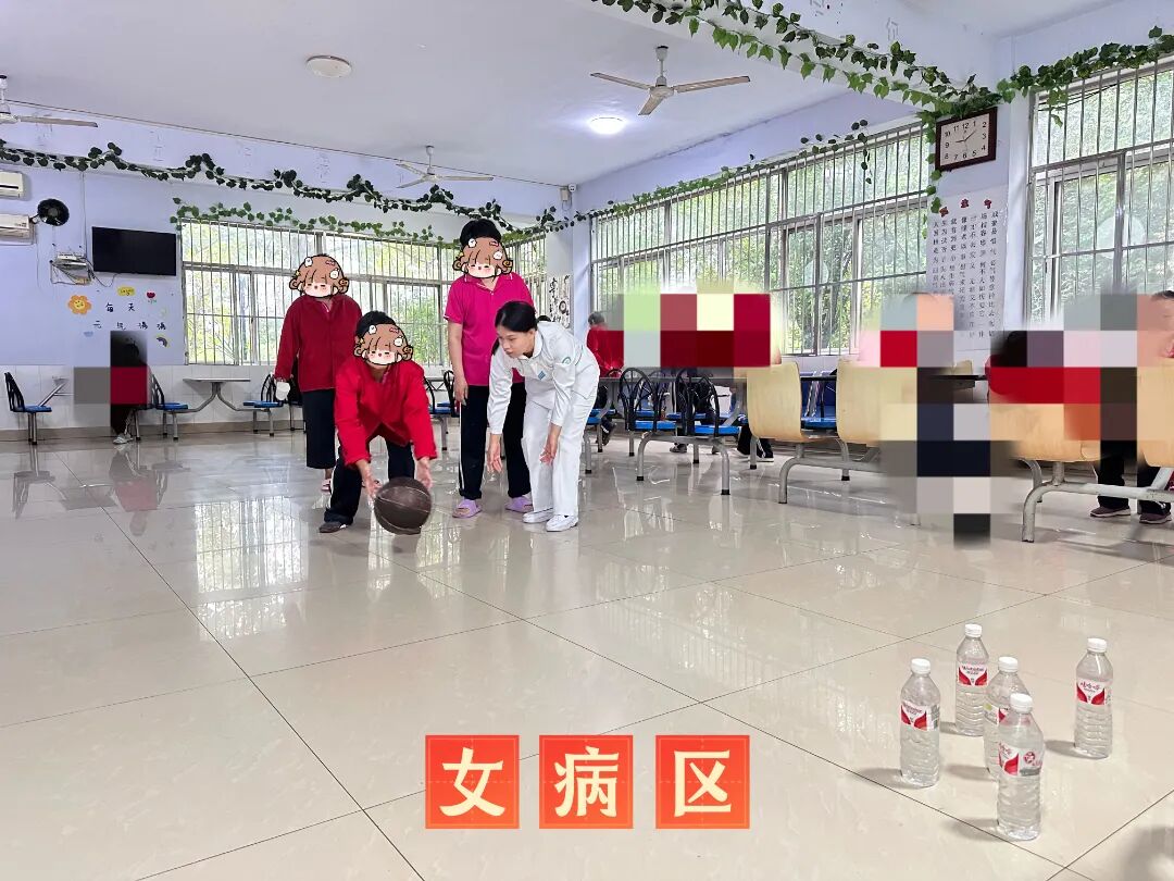 用籃球充當(dāng)“保齡球”,滾動(dòng)、撞擊、歡呼…… 每一次成功擊倒目標(biāo)瓶,都引來陣陣喝彩。這項(xiàng)活動(dòng)不僅考驗(yàn)手眼協(xié)調(diào)能力,更讓大家在運(yùn)動(dòng)中釋放壓力、重拾活力,讓病房里的中秋多了份動(dòng)感與朝氣。