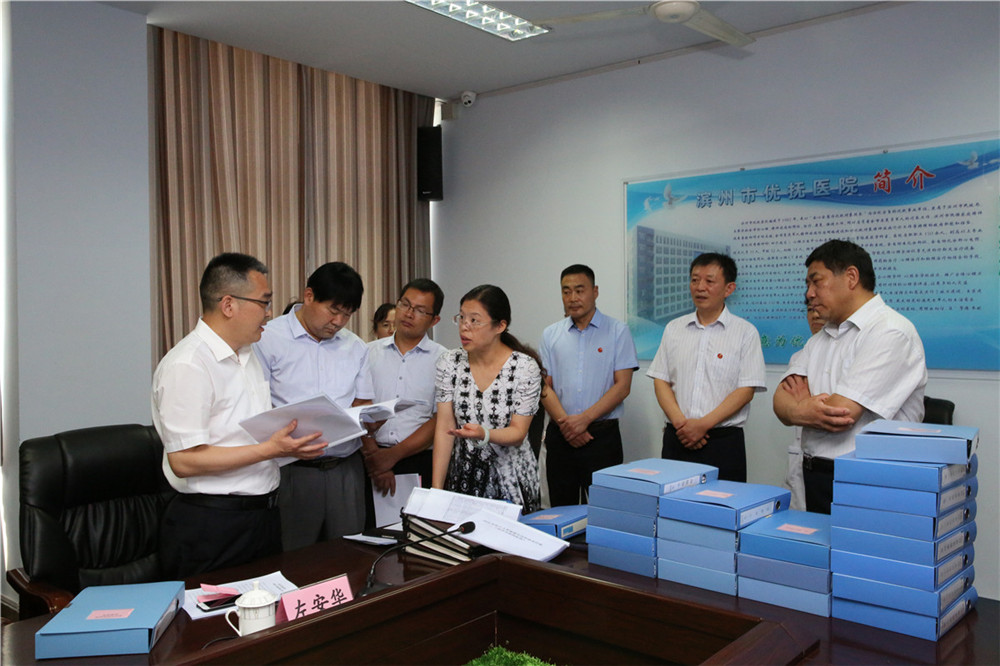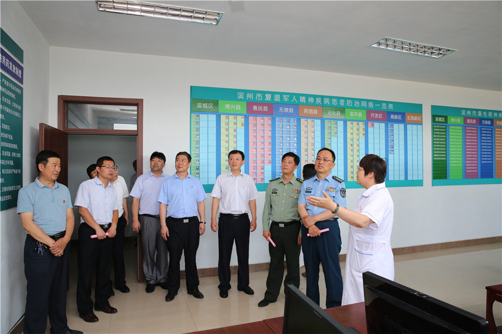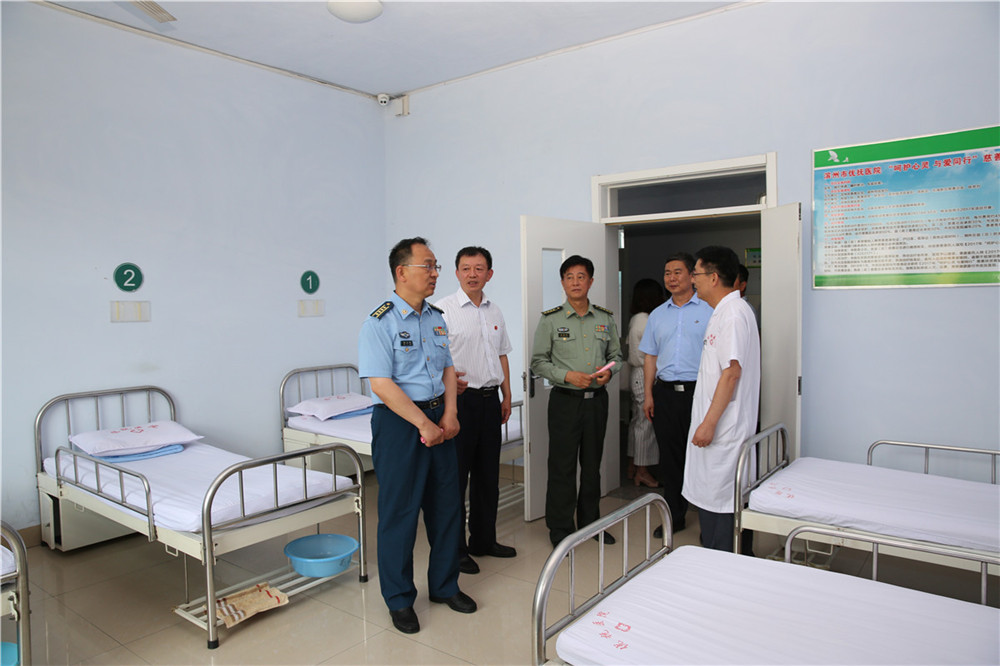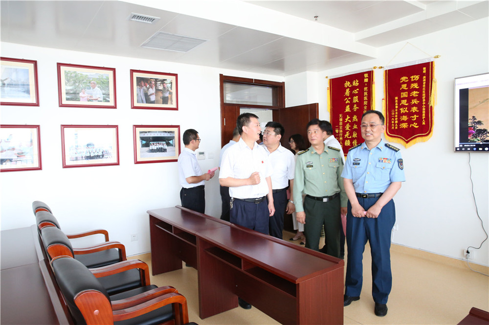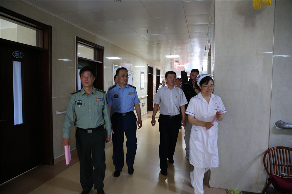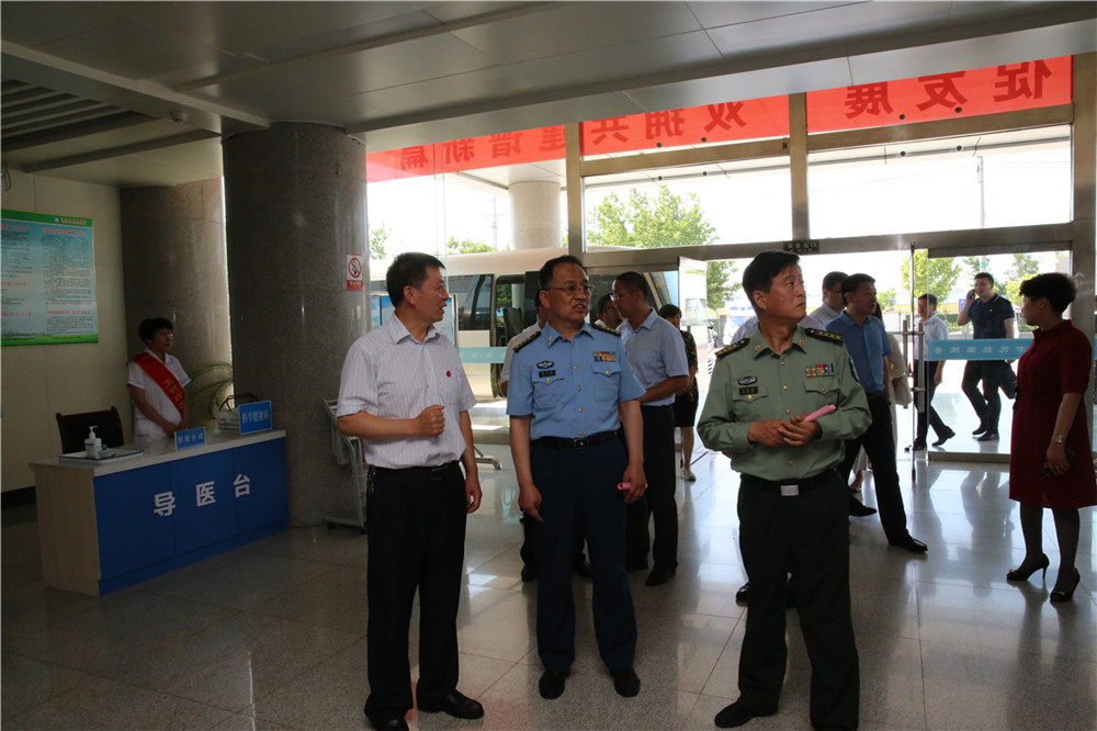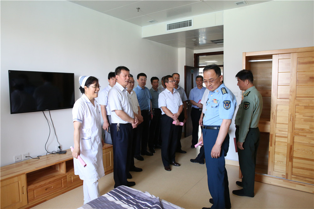 7月5日上午,空軍濟(jì)南基地政治工作部副主任郝立偉率全國(guó)雙擁模范城考評(píng)組來我院進(jìn)行檢查考評(píng), 濱州市委常委、濱州軍分區(qū)政委洪勝兵、濱州市退役軍人事務(wù)局局長(zhǎng)巴明華、副局長(zhǎng)張建軍、副局長(zhǎng)韋安祥等領(lǐng)導(dǎo)陪同檢查。